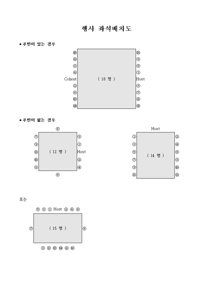 9,000원/월행사시 주빈이 있는 경우와 없는 경우에 따른 좌석 배치도입니다.