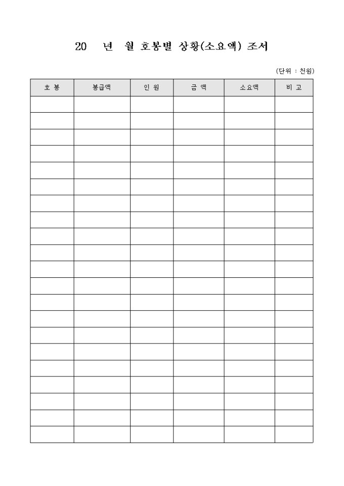 9,000원/월호봉별 상황 조서입니다. 호봉별 봉급 액과 인원별 금액등 조사한 사실을 기록한 문서입니다.