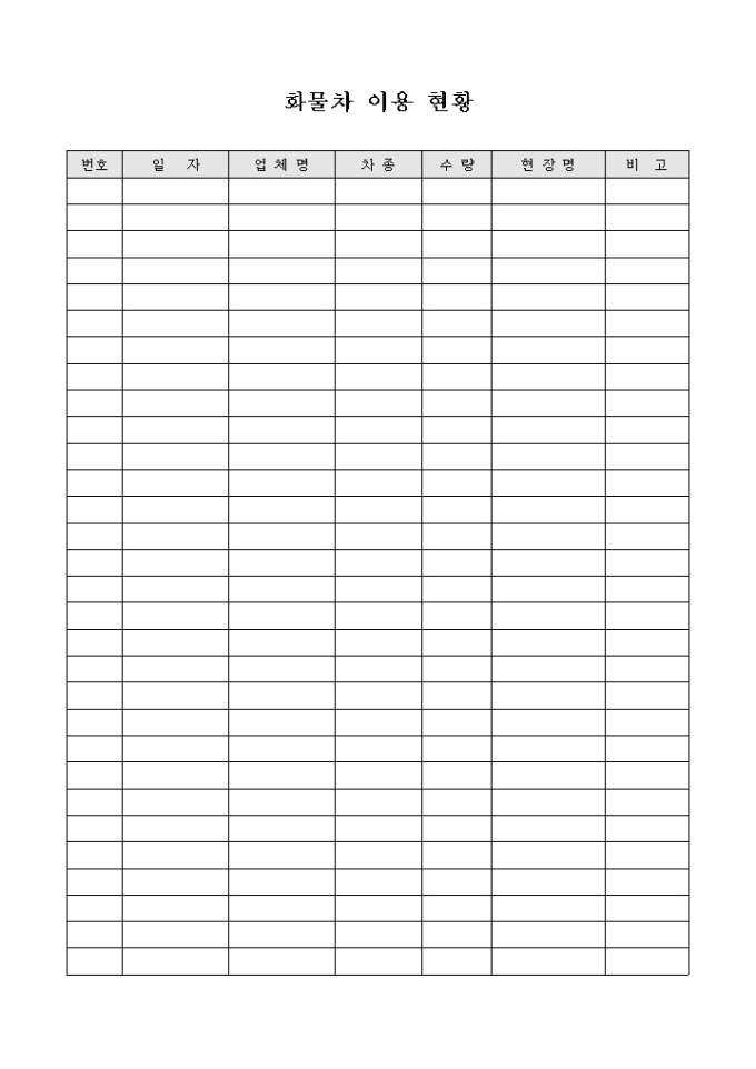 9,000원/월화물차 이용시 화물차의 이용현황을 기록하고 관리하기 위해 제작된 문서입니다.