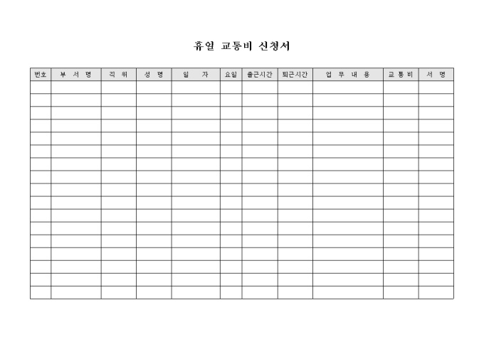 휴일 교통비 신청서
