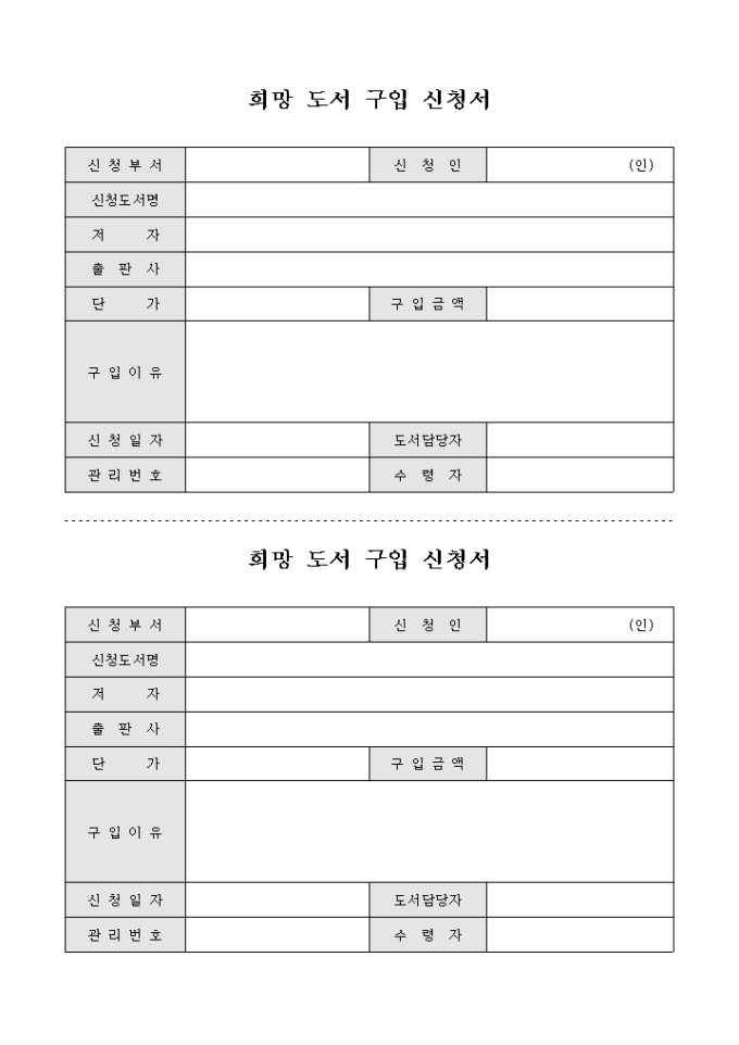 9,000원/월2부로 나누어 사용이 가능하며 구입을 희망하는 도서의 구입을 신청할 때 사용하는 구입 신청서입니다.