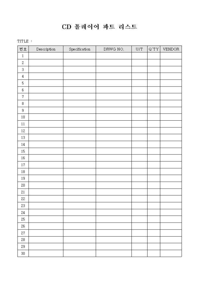 CD플레이어의 파트 리스트입니다. 번호별로 플레이어 파트 리스트를 확인 할 수 있습니다.