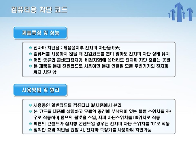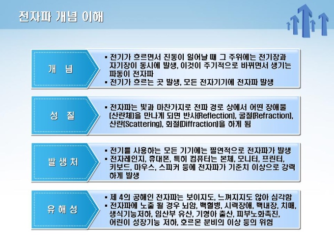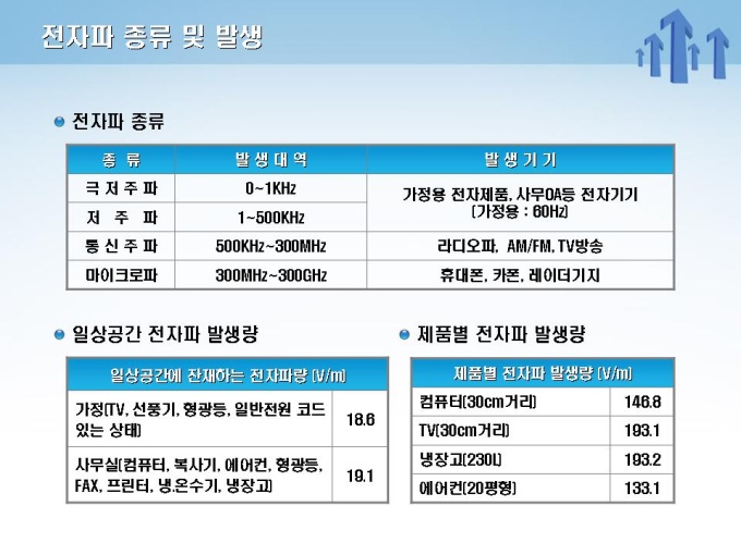 전자파 차단기 제조업체의 회사소개서입니다. 전자파는 라디오 전파와 마이크로 웨이브, 적외선, 가시광선, 자외선, X건, 감마선에 이르기까지 에너지의 크기에 따라 부르는 명칭이 다릅니다. 태양의 표면에서 방출되는 빛을 직접 맞으면 인체에 해롭지만 다행히 지구를 둘러싸고 있는 오존층이 어느정도 자외선을 막아줍니다. 이처럼 전자파도 인체에 해로운 역할을 하는데요.