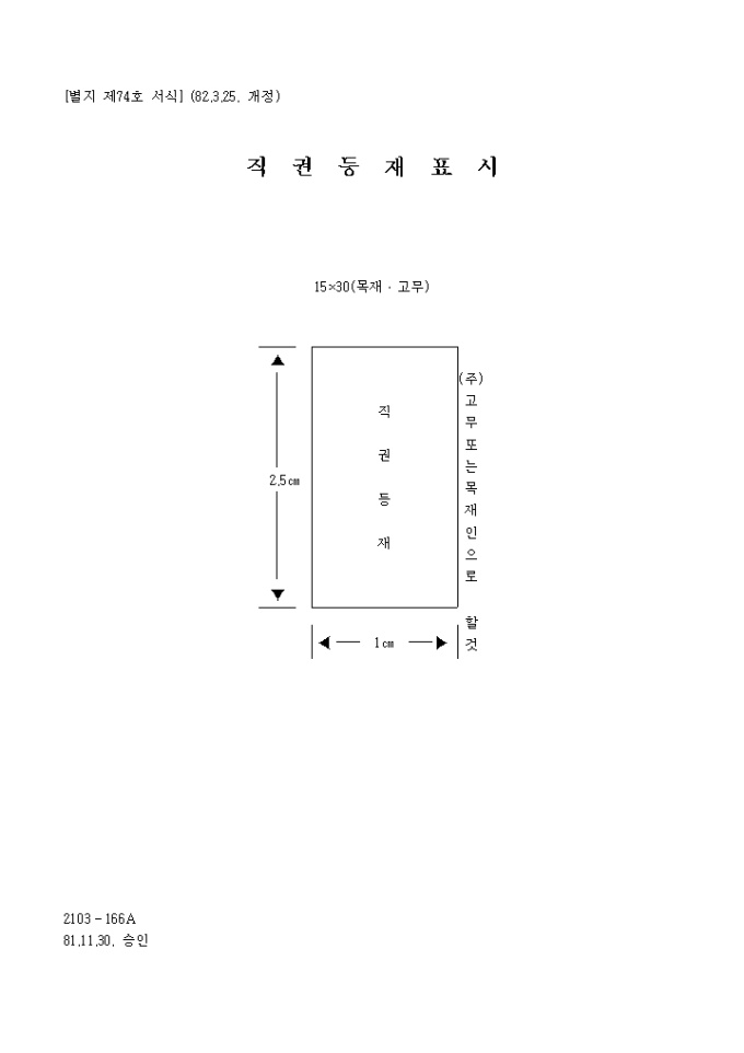 [별지 제74호 서식] 직권등재표시 양식입니다.
