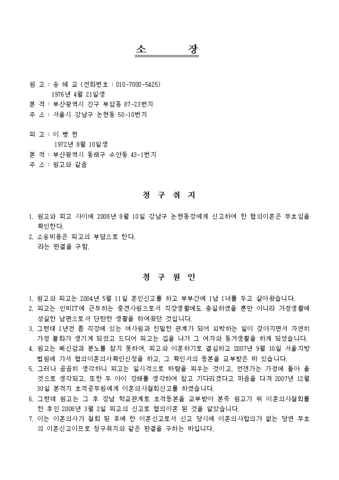9,000원/월협의이혼을 합의한 부부가 이를 취소하기를 희망할 때 법원에 제출하여 이 판결을 취소해 달라고 요청할 때 사용할 수 있도록 제작된 서식입니다.