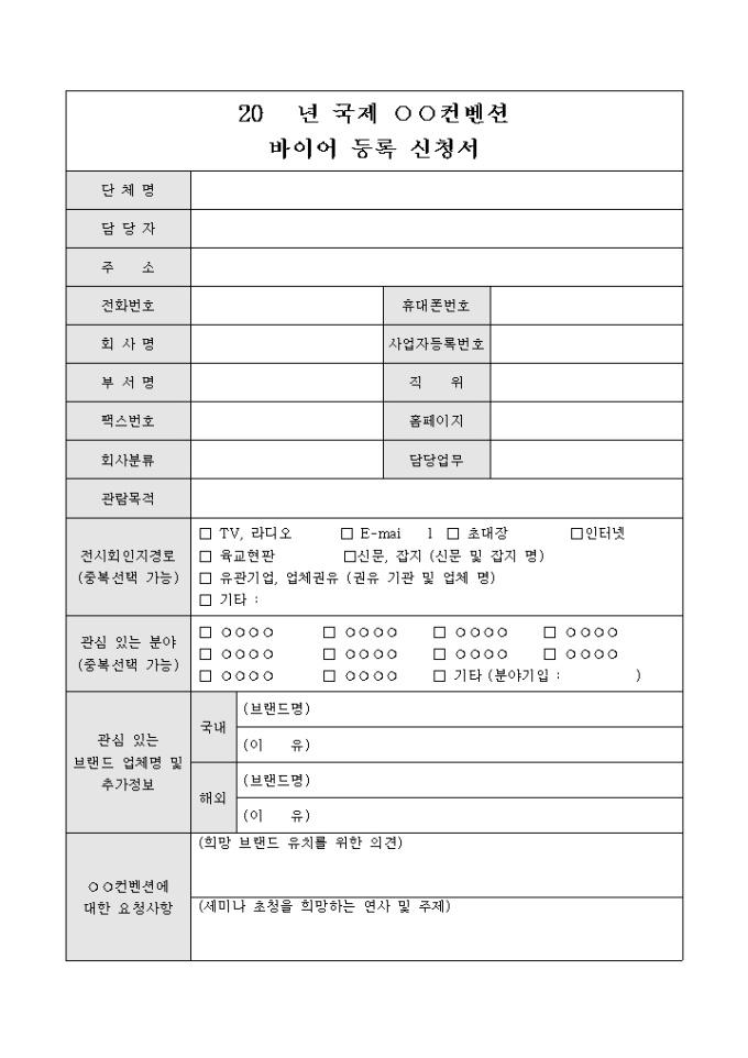 국제컨벤션 바이어를 희망시 사용하는 바이어 등록 신청서 입니다.