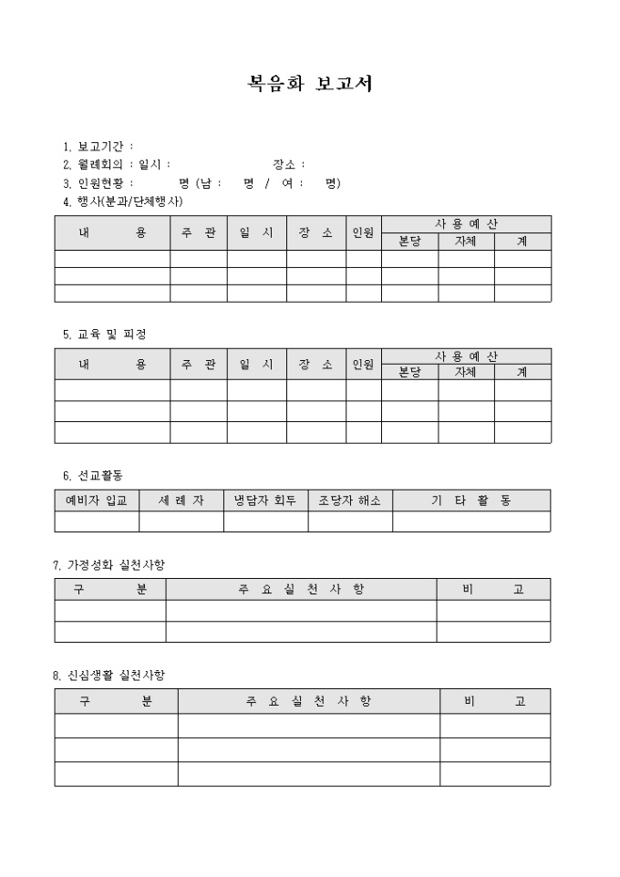 9,000원/월교회에서 년간 복음화 사업에 대한 보고서를 작성할 때 사용하는 서식입니다.