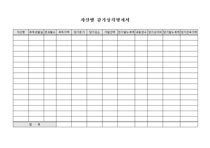 자산별 감가상각명세서