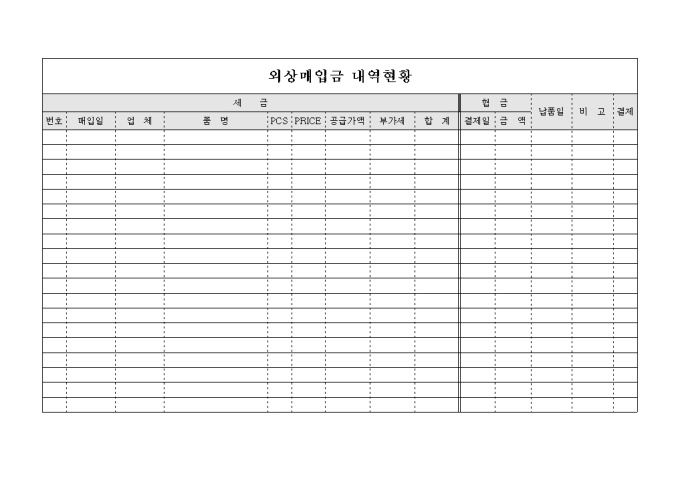 9,000원/월외상 매입금의 내역을 확인 할 수 있도록 구성되어 있습니다.