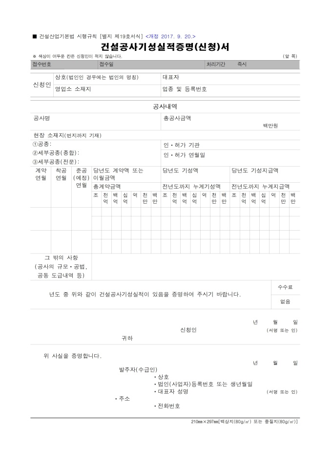 9,000원/월건설공사기성실적증명,신청서 입니다.