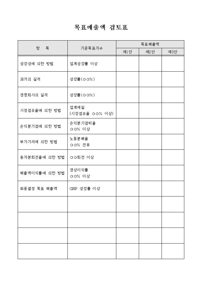 목표매출액 검토표(기업)