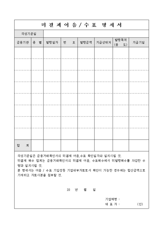 미결제 어음과 수표등을 기록하고 손쉽게 관리 할 수 있도록 구성된 문서 입니다.