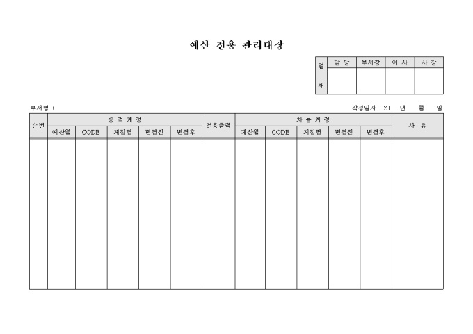 예산전용관리대장