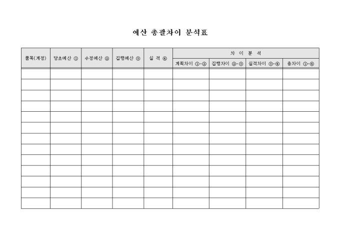 예산총괄차이 분석표(품목별)
