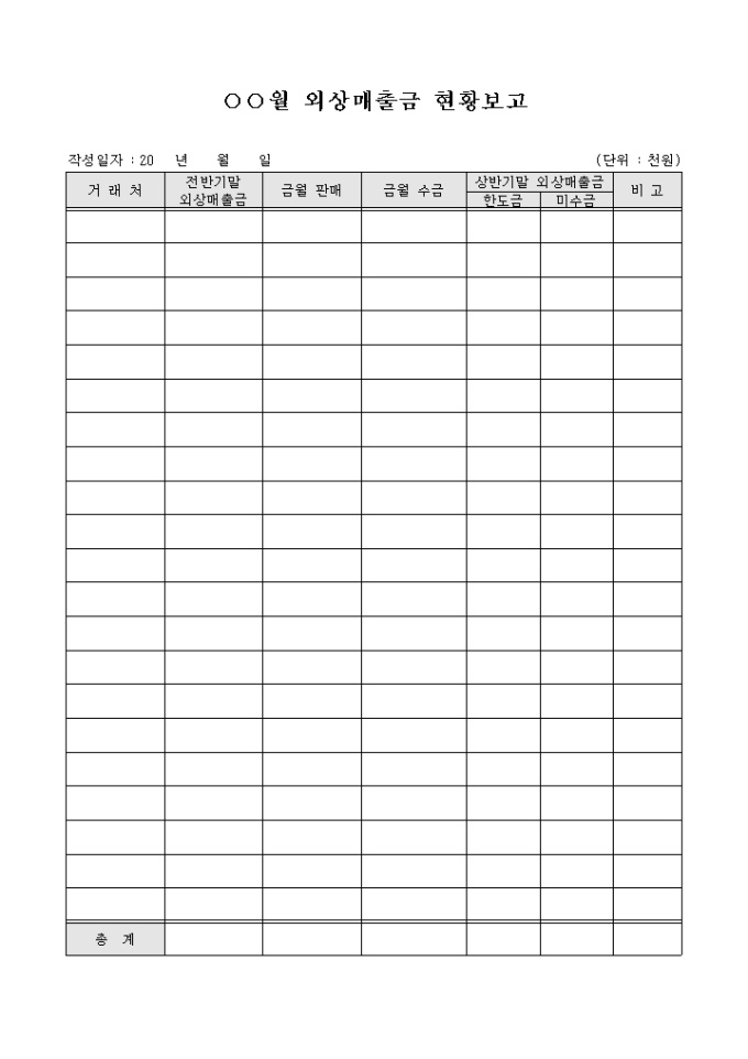 외상매출금현황보고(월간)
