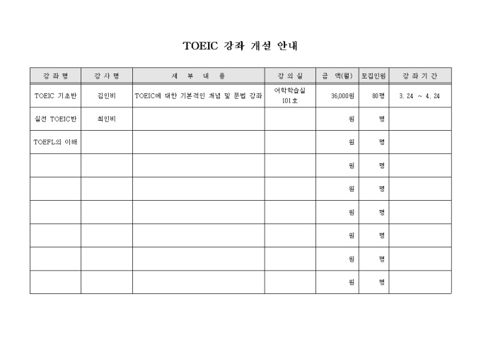 TOEIC 강좌 개설 안내