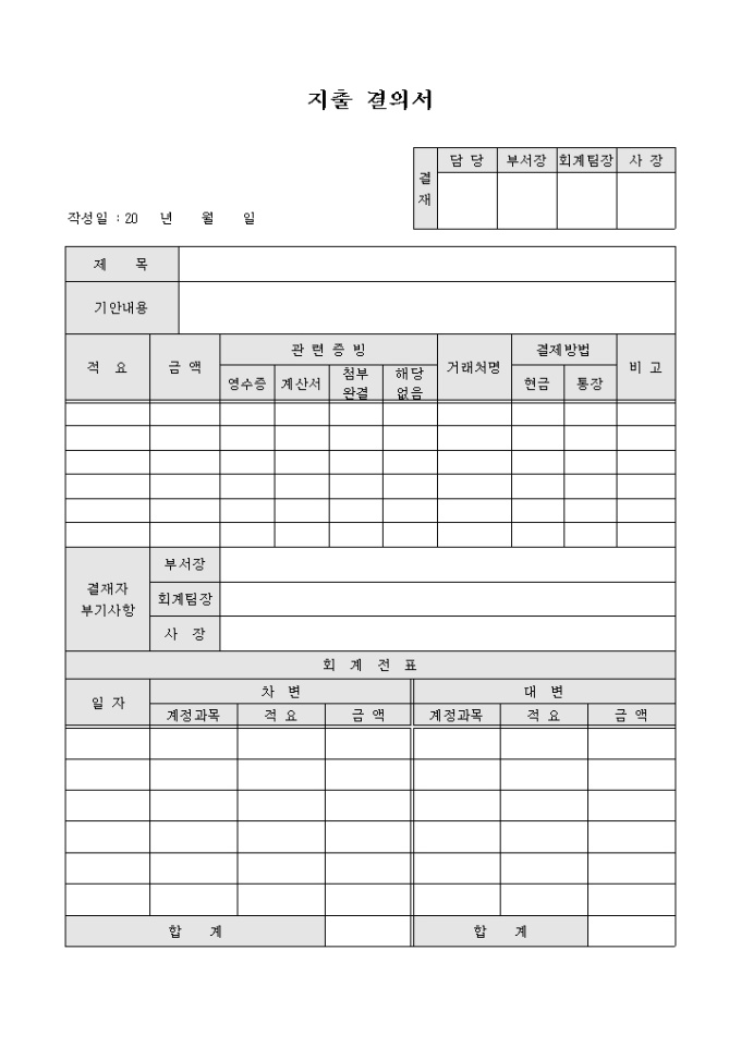 지출결의서(회계전표 포함)