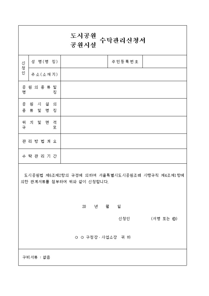 9,000원/월도시공원,공원시설수탁관리신청서 양식입니다.