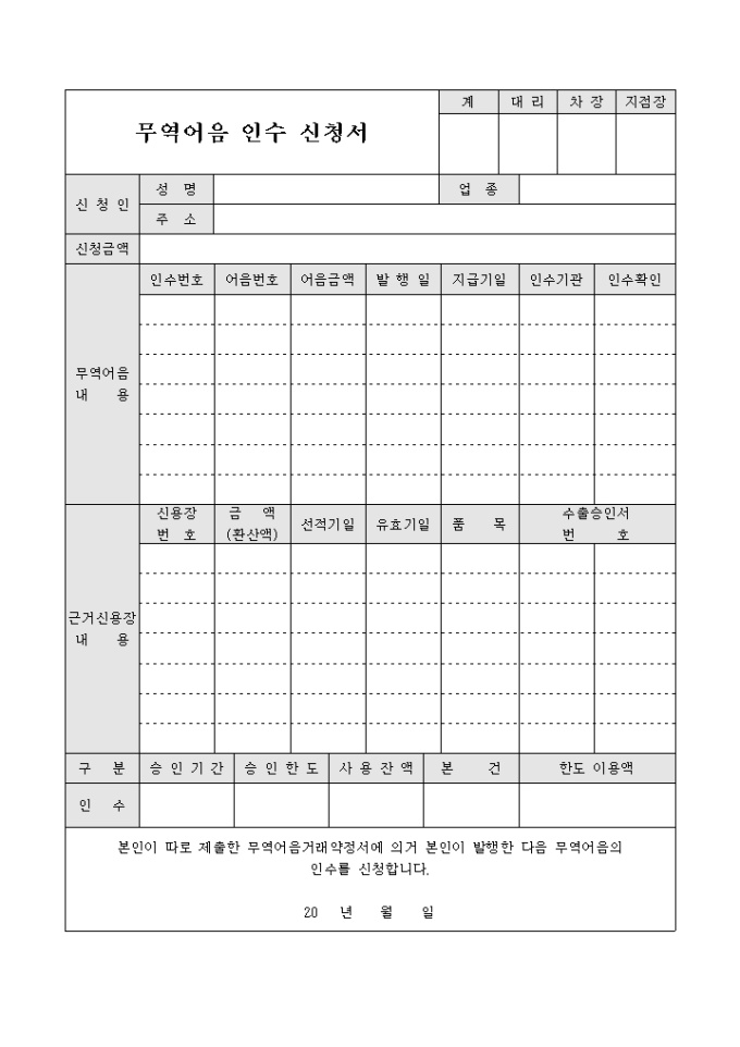 무역어음 인수신청서