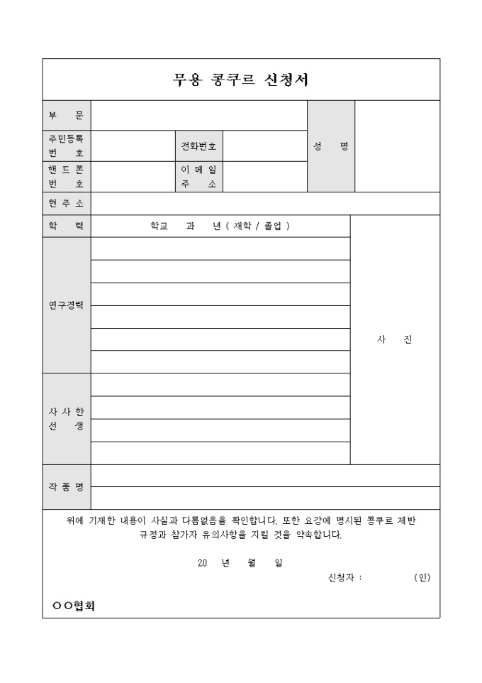 무용콩쿠르 신청서