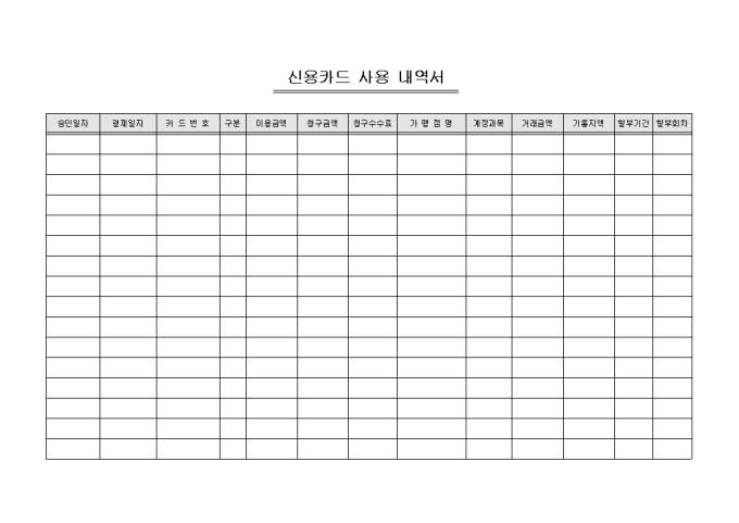 9,000원/월신용카드 사용에 대한 내역을 기록할 수 있도록 제작된 서식으로 승인일자 및 카드번호 와 이요금액 등을 기록합니다.