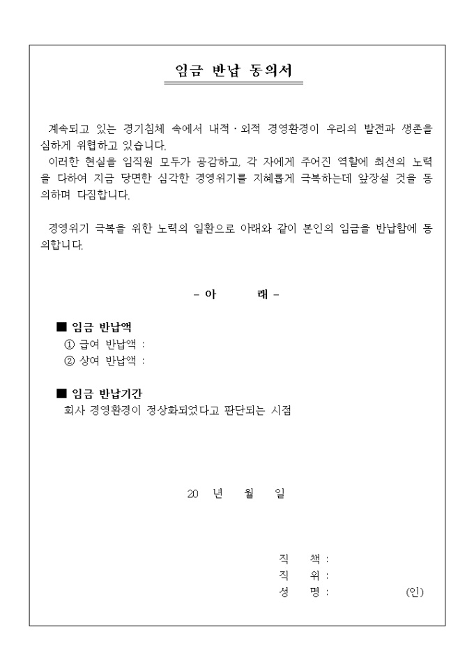 경기 침체 속에서 내적, 외적 경영환경이 우리의 발전과 생존을 심하게 위협하고 이런한 현실을 임직원이 모두가 공감하여, 주어진 역할에 대 지혜롭게 극복하는 앞장 설 것을 동의합니다.