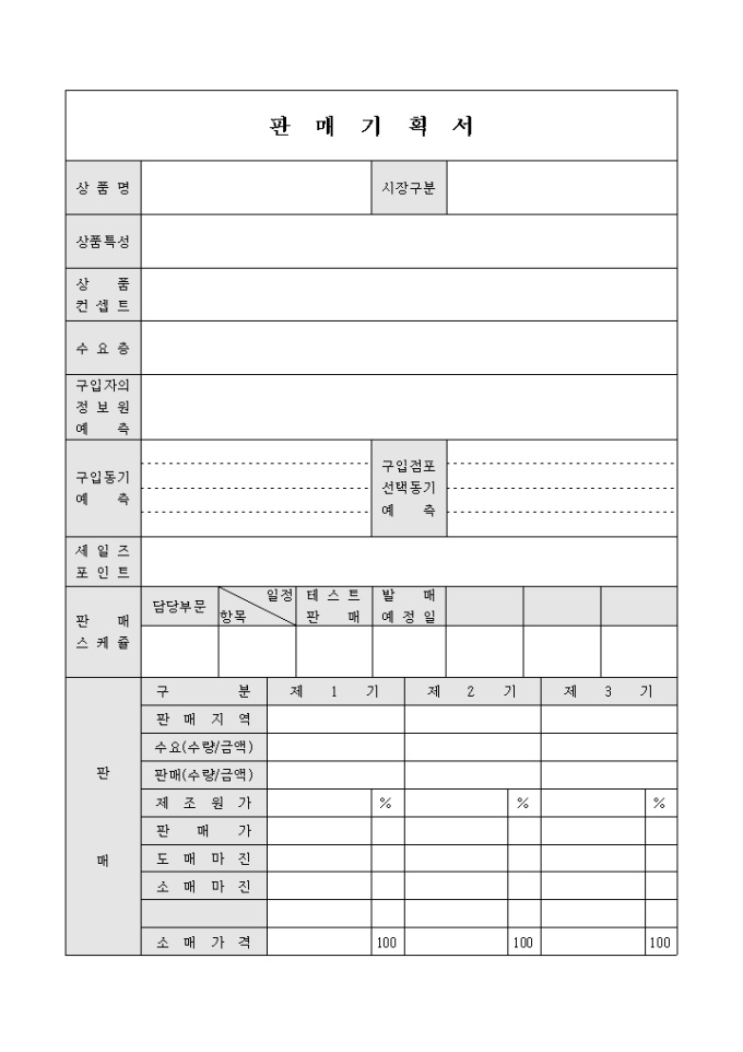 9,000원/월상품의 특성 및 컨셉트등을 기록 할 수 있는 판매 기획서 입니다.