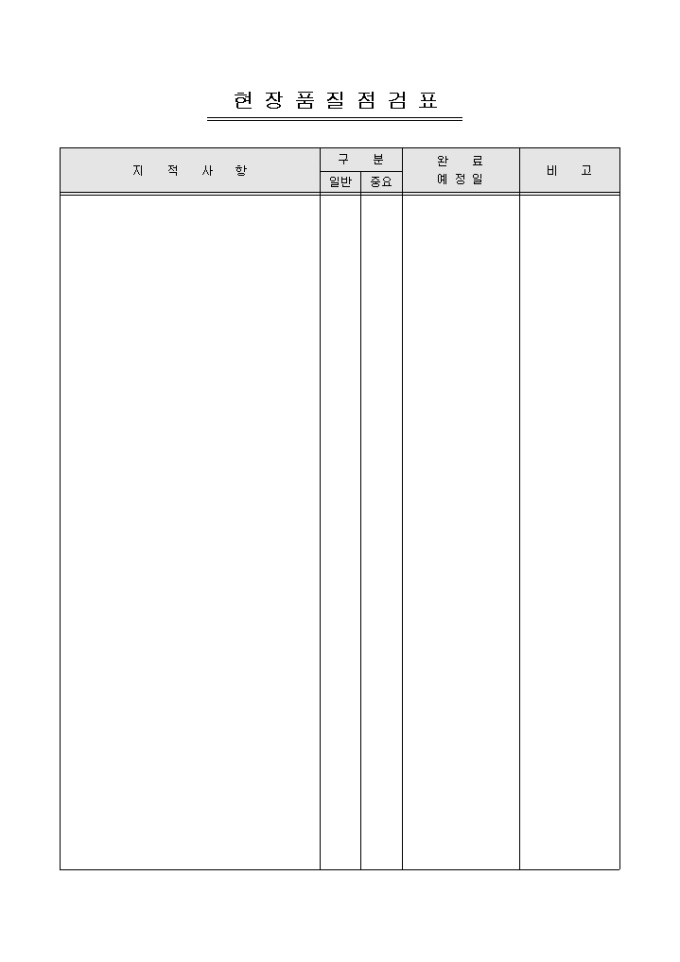 9,000원/월현장 품질 점검내역을 기록할 수 있는 서식으로 지적사항과 구분에 따른 완료 예정일을 기록하도록 제작 되었습니다.