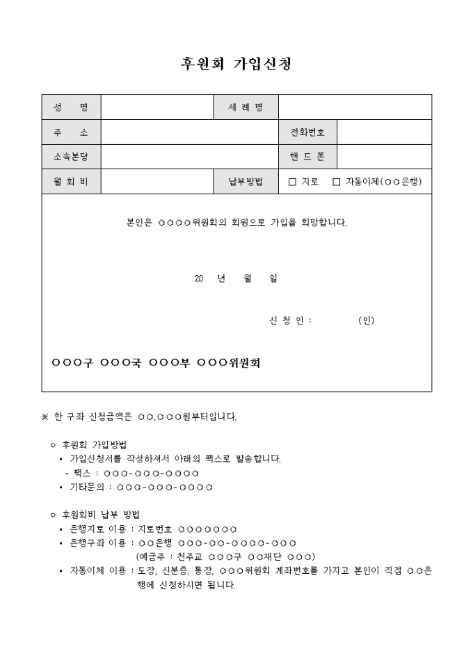 후원회 가입신청서(성당)