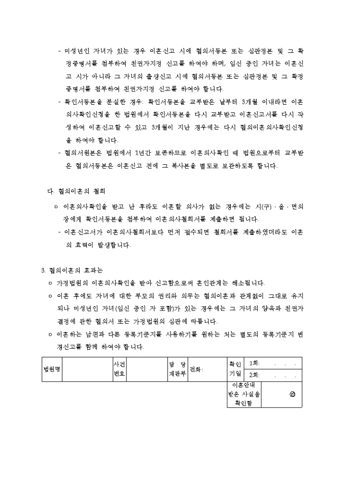 2009년 4월 14일자 협의이혼제도안내문입니다.