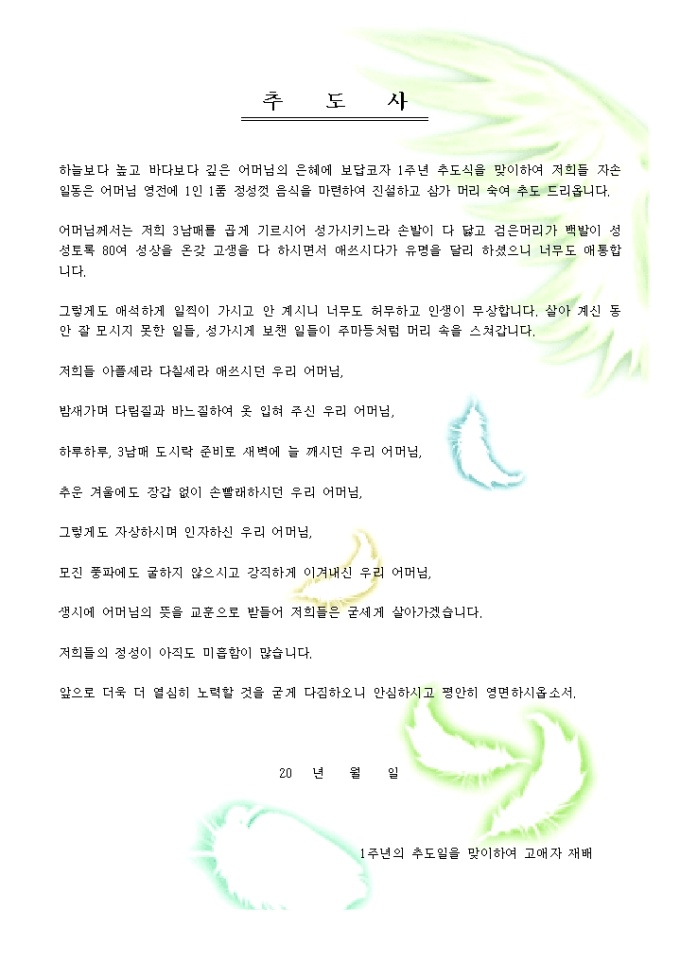 9,000원/월어머니 추도사입니다.