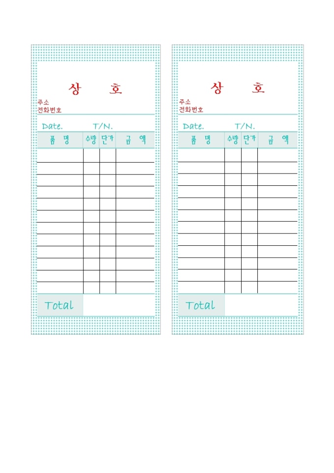 9,000원/월주문 받을 때 사용하는 빌지 양식으로 상호와 주소, 전화번호 등을 기재할 수 있고, 테이블번호, 품명, 수량 등을 기록합니다.