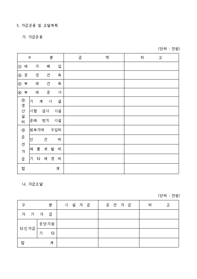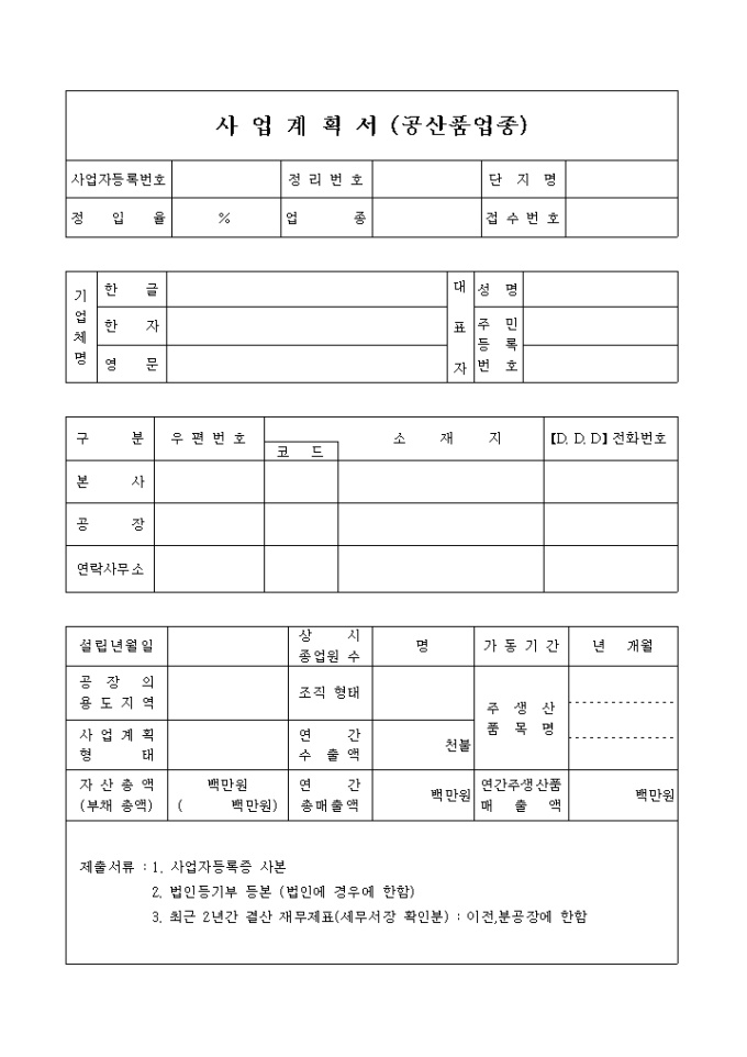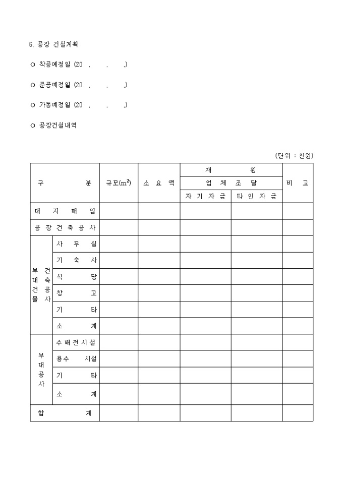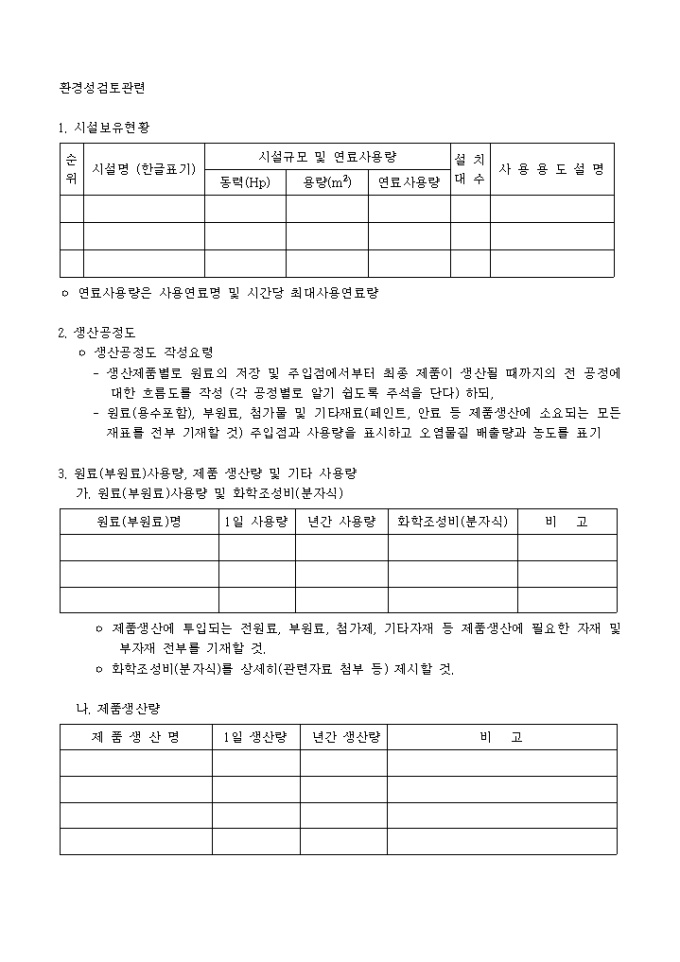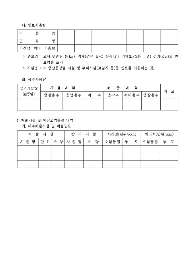 공업단지입주계약, 변경신청서