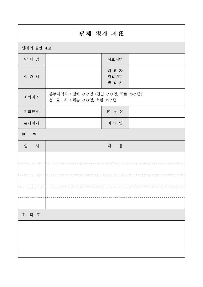 9,000원/월단체로 해외 선교시 평가 항목별 내용등을 확인하여 단체 업적을 평가 하고자 할 때 사용하는 평가지 입니다.