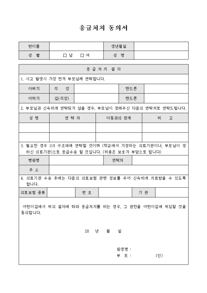 응급처치동의서(어린이집)