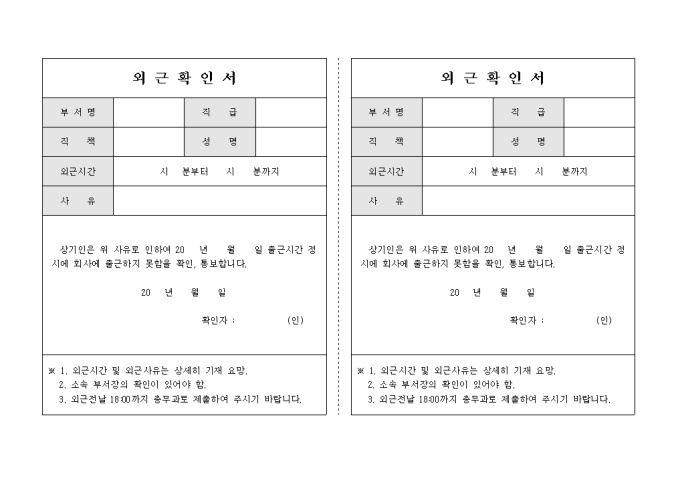 외근확인서(2등분)