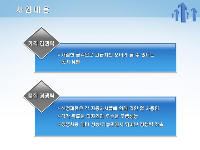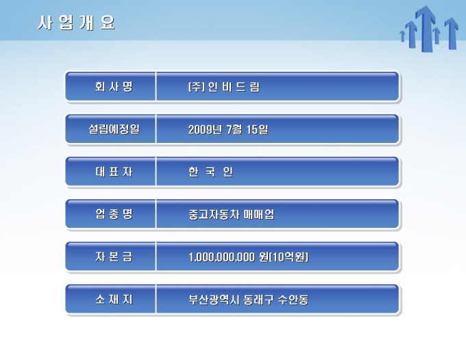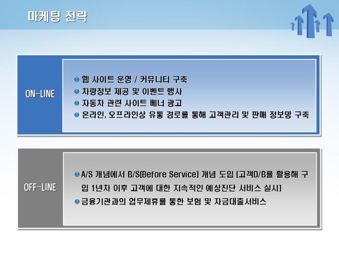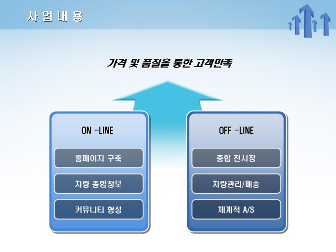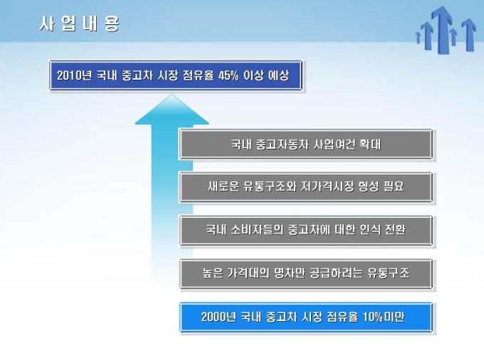 중고차 매매 사업계획서로써 목차는 1.사업개요 2.사업내용 3.사업수립계획 4.마케팅전략 5.재무계획으로 구성되어 있습니다.