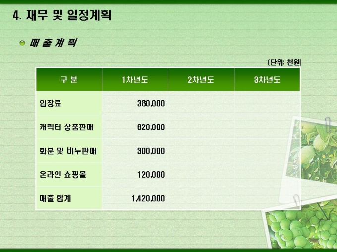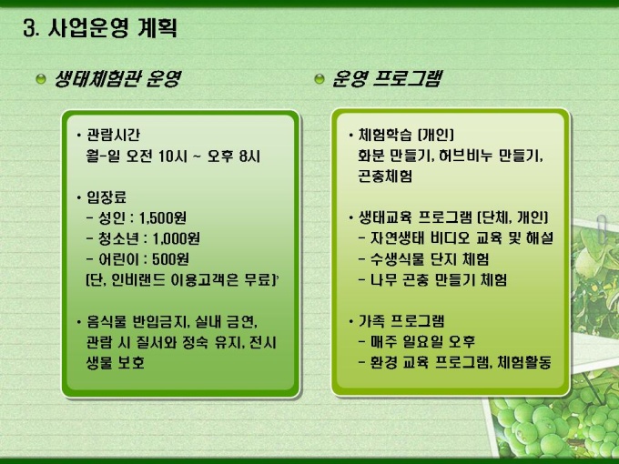 전시관 및 체험관 사업계획서로 1.회사소개 2.사업소개 3.사업운영 계획 4.재무 및 일정계획으로 구성되어있습니다.