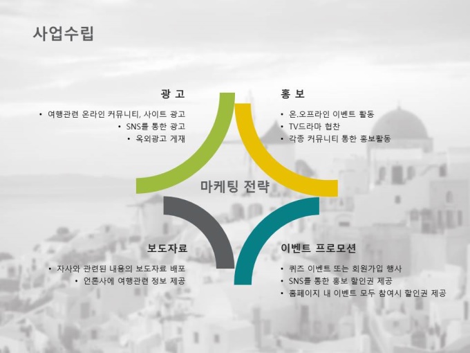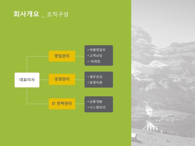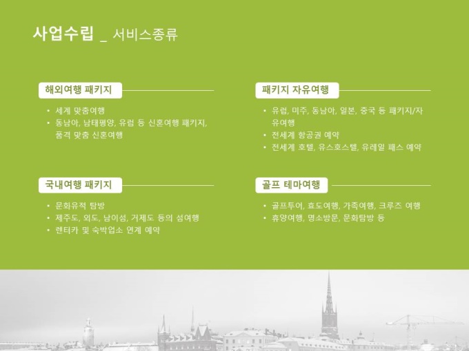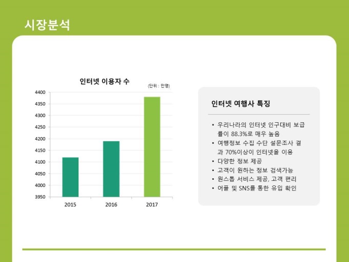 여행사 사업계획서입니다. 목차는 1.회사개요 2.시장분석 3.사업소개 4.사업수립 5.재무계획으로 구성되어 있습니다.