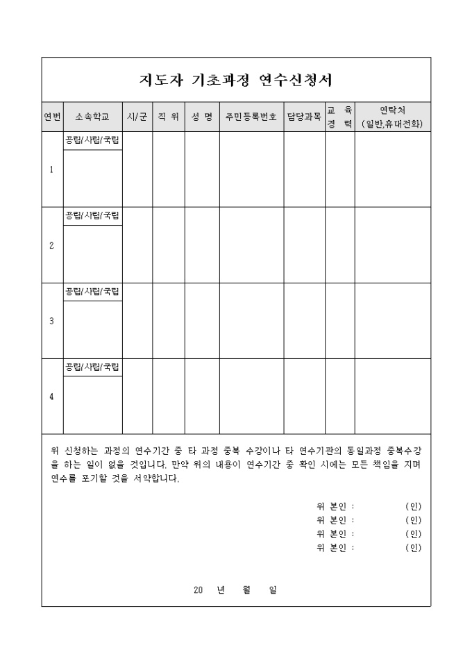 9,000원/월지도자 기초과정에 대한 연수시 사용하는 신청서 입니다.