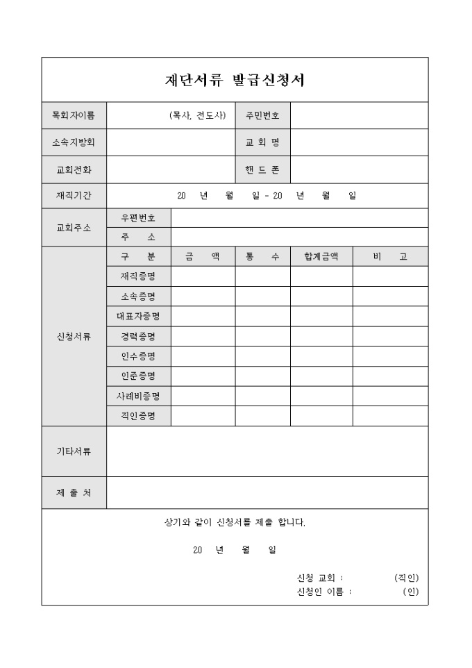 9,000원/월재단서류 발급 신청서 입니다. 각종 증명서의 발급을 신청시 사용 합니다.