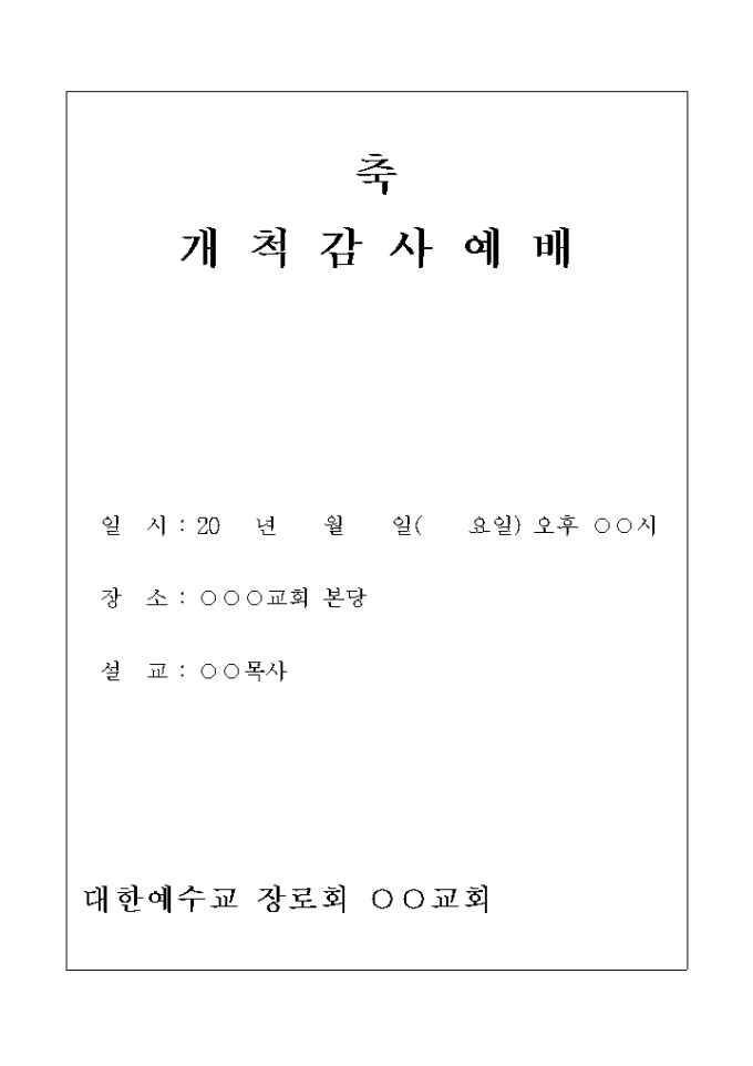 9,000원/월교회개척시 그에 대한 감사예배를 드릴 때 사용하는 개척감사 예배 안내문 입니다.