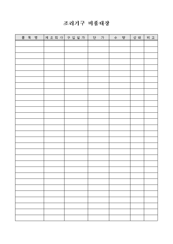 9,000원/월주방에서 현재 보유하고 있는 조리기구의 현황을 기입하여 관리를 효율적으로 하고자 할 때 사용할 수 있도록 만들어졌으며 품목, 제조회사, 구입일자 등을 기입할 수 있게끔 제작된 서식입니다.