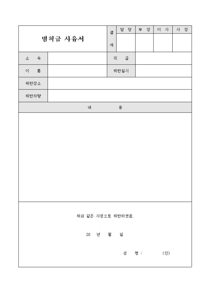 9,000원/월위반 차량에 대해서 범칙금을 부과할 때 그 사유에 대해서 알릴 수 있도록 제작된 서식입니다.