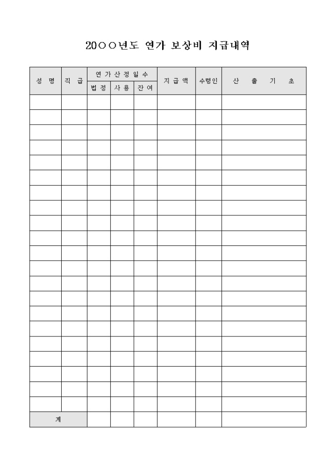 지급내역서(연가 보상비)