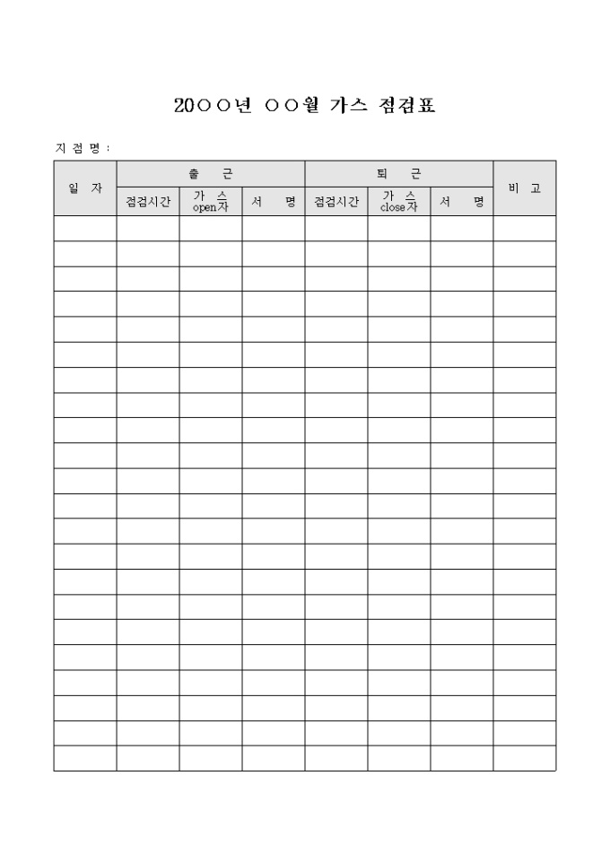 가스 점검표(월별)