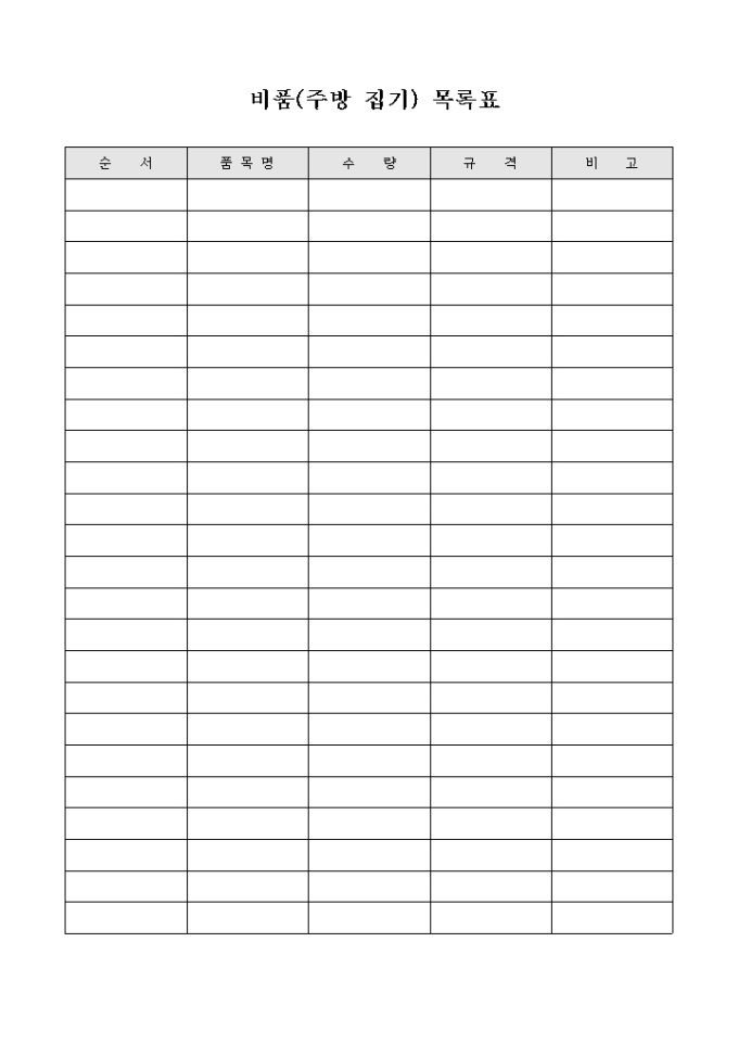 9,000원/월주방 집기의 내역을 기록하여 편리하게 관리 할 수 있도록 제작된 서식으로 품목별 수량과 규격을 기록합니다.
