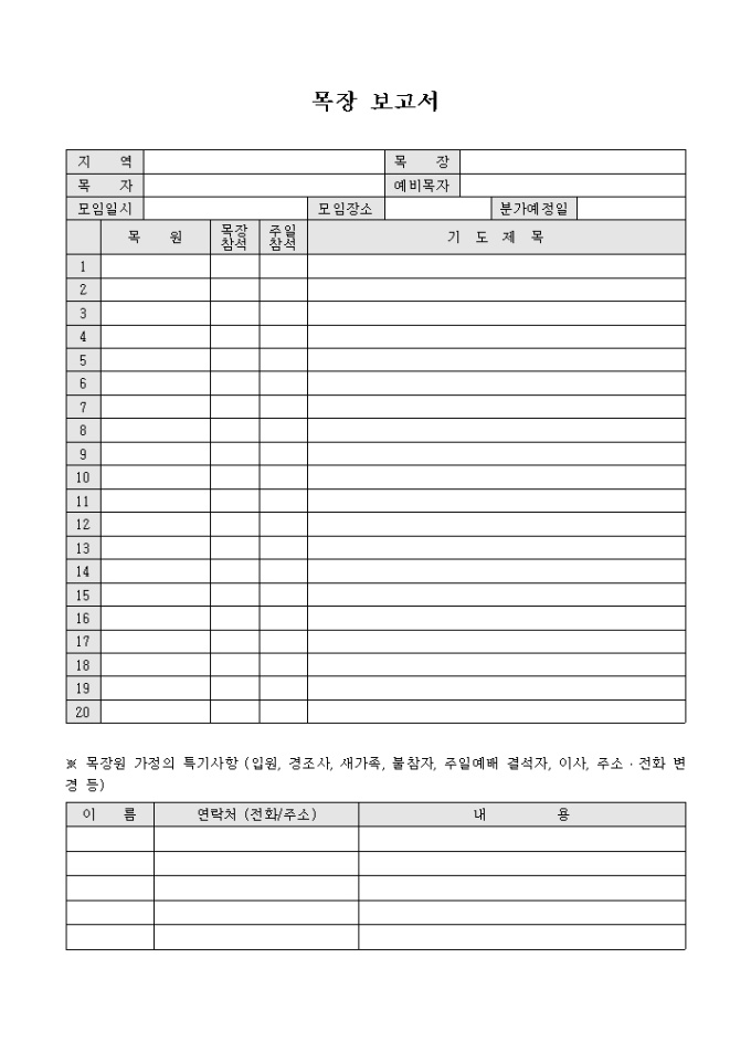 9,000원/월교회에서 사용하는 목장 보고서 양식으로 지역과 장소 등을 기재하고 목원과 기도제목을 기록합니다.