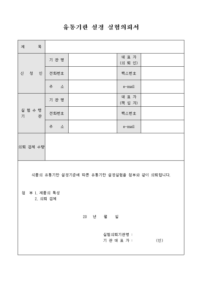 9,000원/월식품의 유통기한 설정 기준에 따른 유통기한 설정 실험을 의뢰하고자 할 때 사용하는 서식입니다.