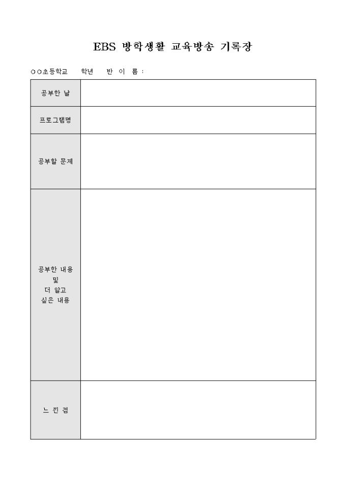 9,000원/월초등학생이 방학 중 교육방송을 청취한 내용을 기록할 수 있도록 제작된 서식으로 방송 내용과 느낀점 등을 기록합니다.